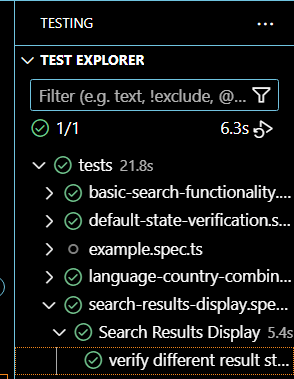 For the Search Results Display section (section 4), I notice it's more of a comprehensive test that involves multiple variations. I'll create a test suite that covers the different display scenarios